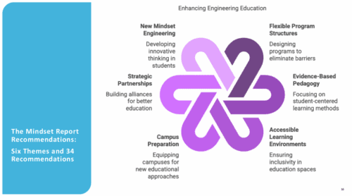 The mindset initiative proposed “to develop a roadmap for a flexible, human-centered, accessible, and multi-path engineering curriculum that fosters a growth mindset and prepares graduates to thrive in an unpredictable future.” The final report sets out six themes for enhancing engineering education along with 34 recommendations for implementation.