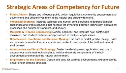 Next, Gilbert launched a strategic planning effort with a team of faculty, students, staff, and outside consultants and stakeholders. A new vision and set of strategies were developed to guide this transformation and prepare students (and the profession) for the future. The plan included the identification of strategic areas of competency for the future, a complete curriculum overhaul, the reorganization of the department, initiation of an innovation prize program, and plans for a disruptive innovation symposium in 2026.